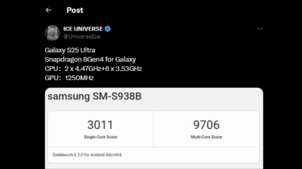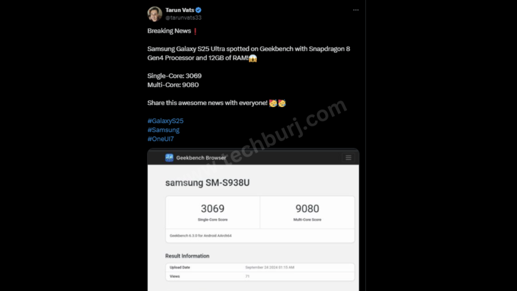 Just keep in mind that it’s just an expected geekbench score and it could or not, and till now there has been no confirmation from the Samsung official. While another X user, @tarunvats33, has shared that the S25 Ultra scores 3069 in single-score and 9080 in multi-core, which is also a different score from the @UniverseIce X user.